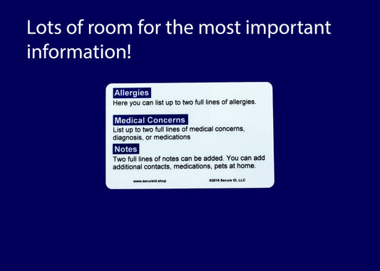 Secure ID, LLC is a small but mighty family business in Madison, WI. We specialize in custom safety & awareness products. Each year we donate a portion of our sales to a local non-profit. Thank you for your support!
