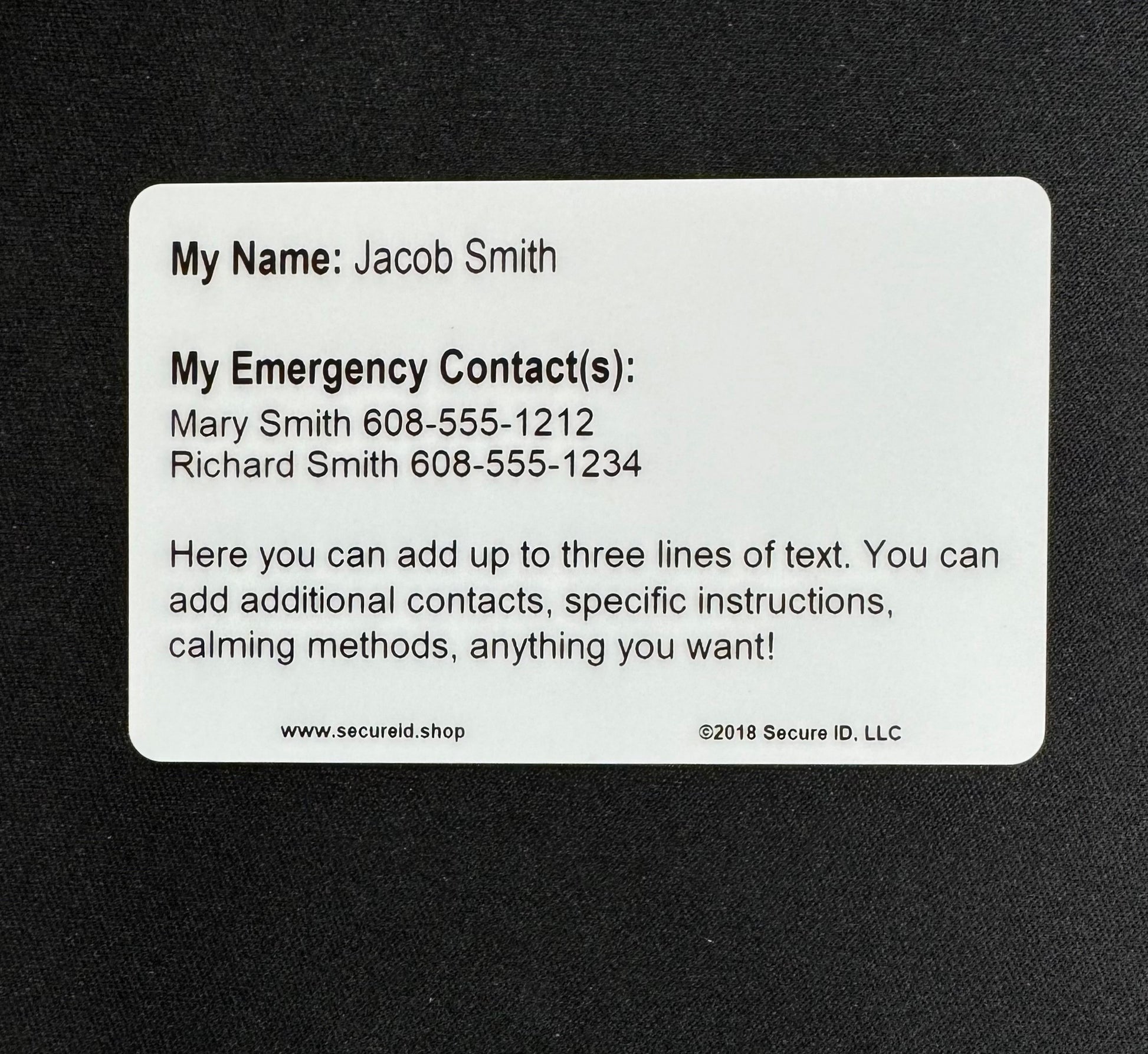 Secure ID’s Autism Cards are designed to help communicate and give peace of mind to those with Autism.