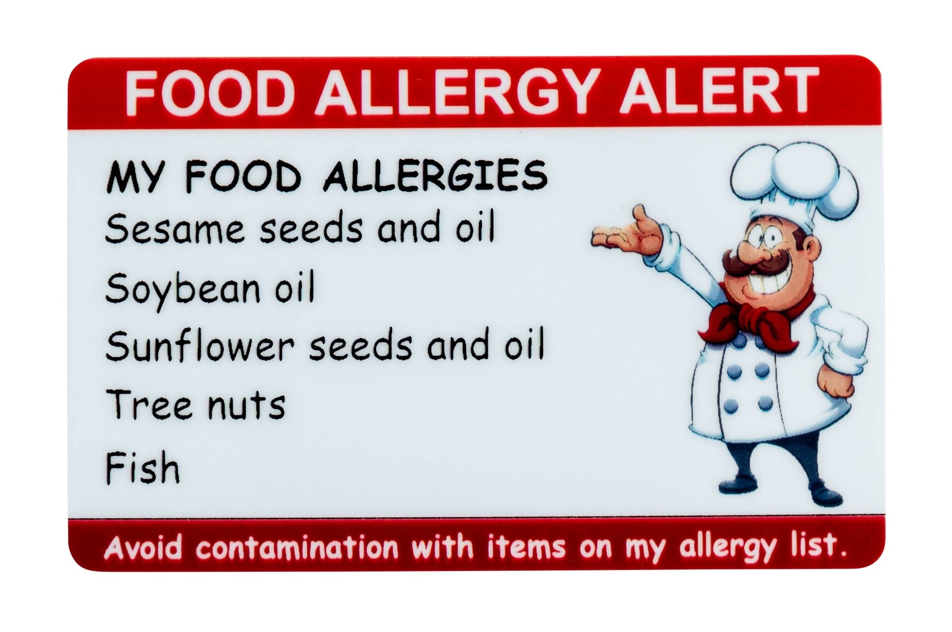 Do you and your loved ones suffer from food allergies? Whether your reaction is mild or severe, this safety card can alert anyone preparing your food on what to avoid to help keep you safe and prevent an allergic reaction from taking place in the first place.