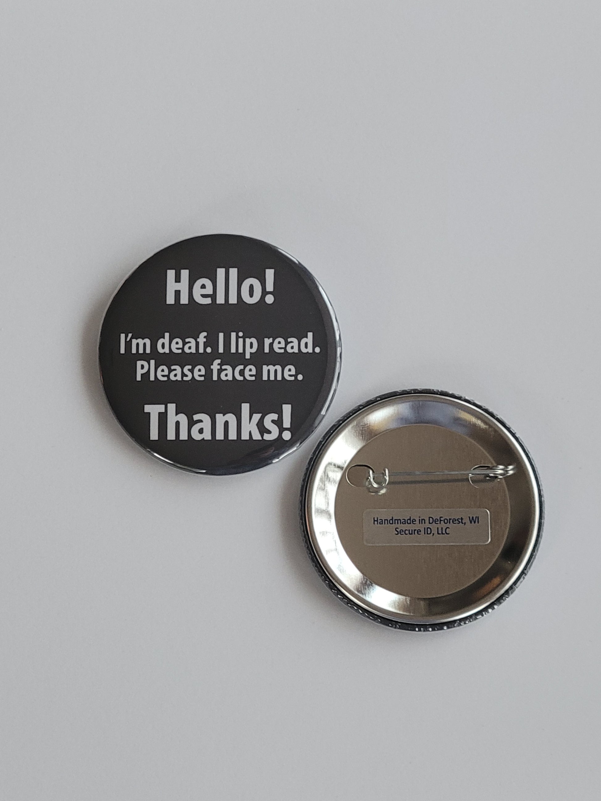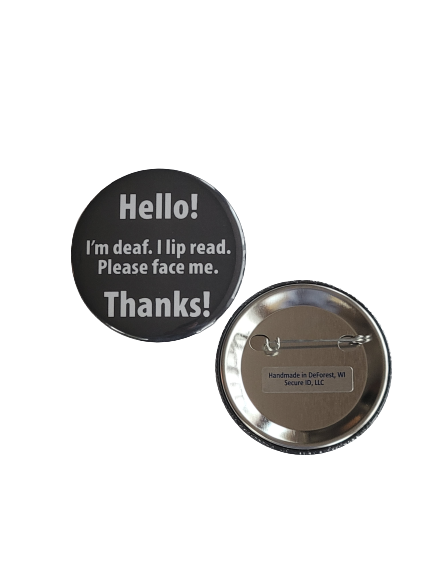 Secure ID's Hard of Hearing buttons can communicate for you! These buttons come in a pack of 2 with pinback or clothing magnet backing options. Clothing magnets will not poke holes in your clothing.