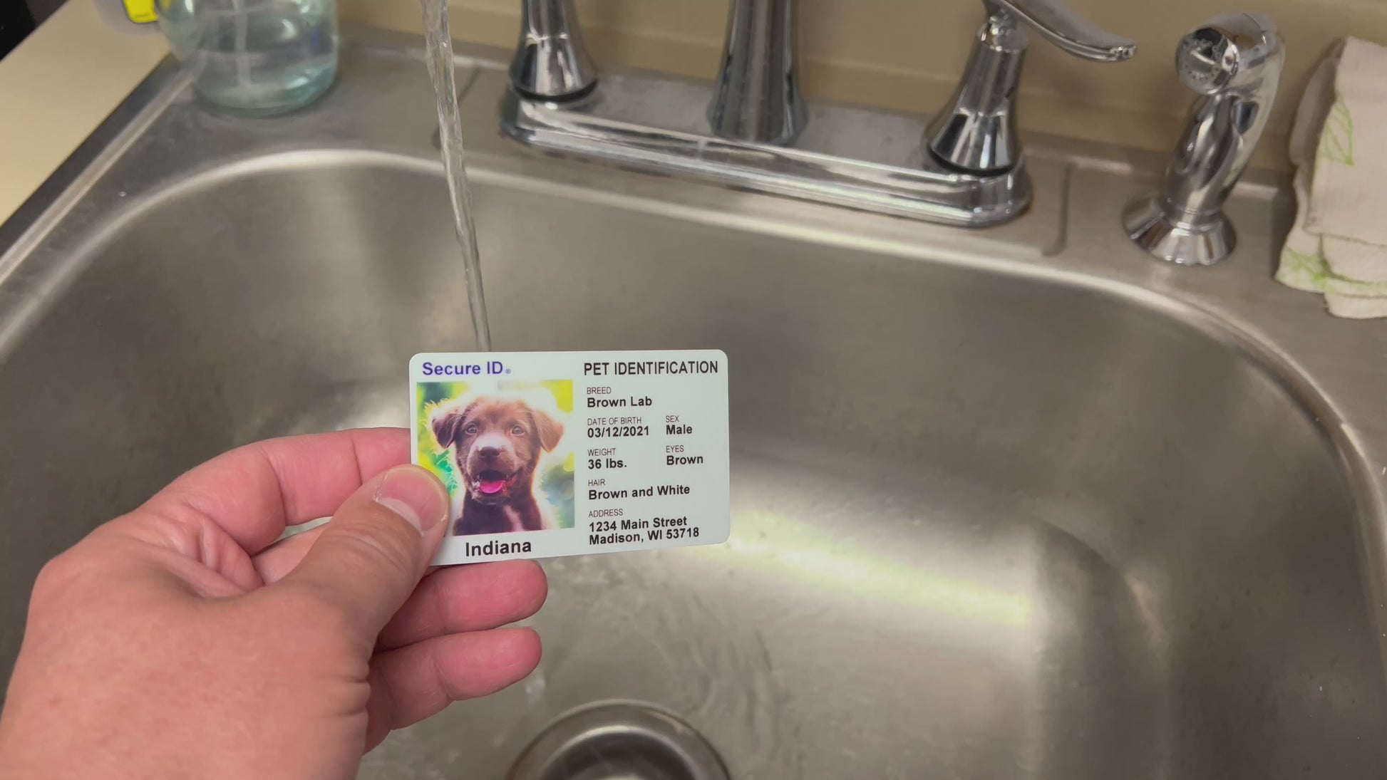 These cards are printed using the same printers and technology used to make a drivers license and are made to last! Printed at our Madison, Wisconsin location using made in the USA parts. This card is a great way to show off your pets!