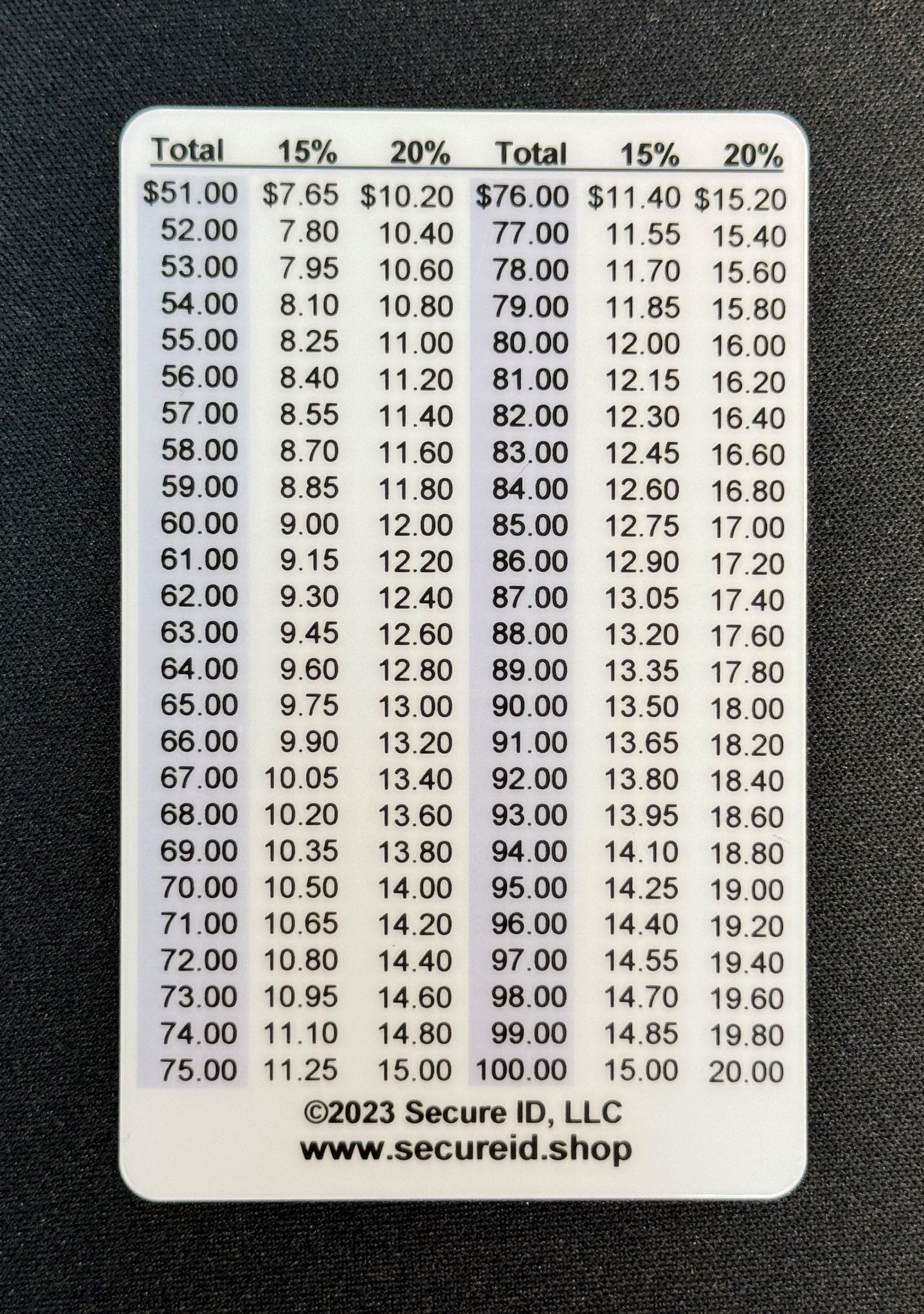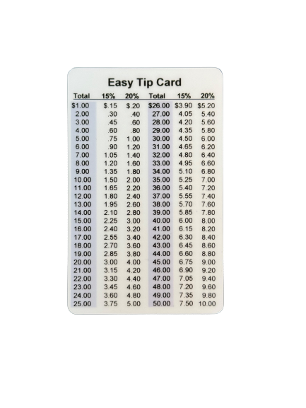 Designed and printed in the USA by our small, family owned business in Madison, WI! This is credit card sized so it fits in purse and wallet card slots. Durable plastic is waterproof and can be cleaned with soap and water for years of use. Discreet and easy to read, costs less than the tip of one meal dining out!